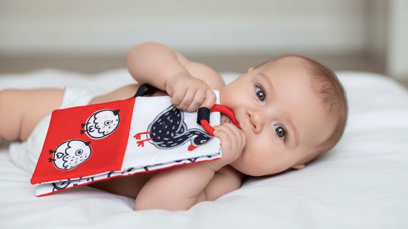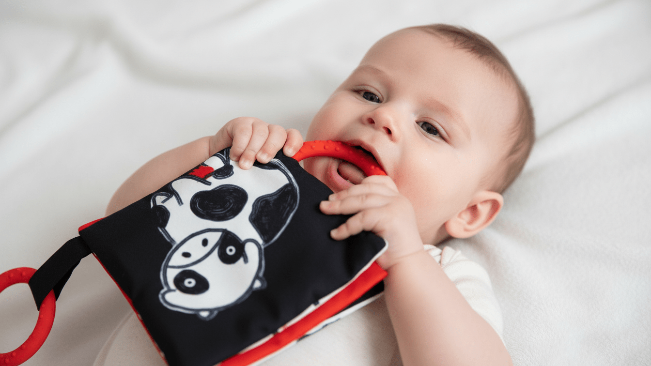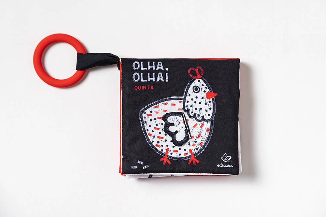Os primeiros meses de vida são feitos de descobertas — e este livro de tecido de alto contraste foi criado exatamente para isso. Com ilustrações em preto, branco e vermelho, as cores que os recém-nascidos distinguem melhor, este é o livro perfeito para estimular a visão do teu bebé desde o nascimento.