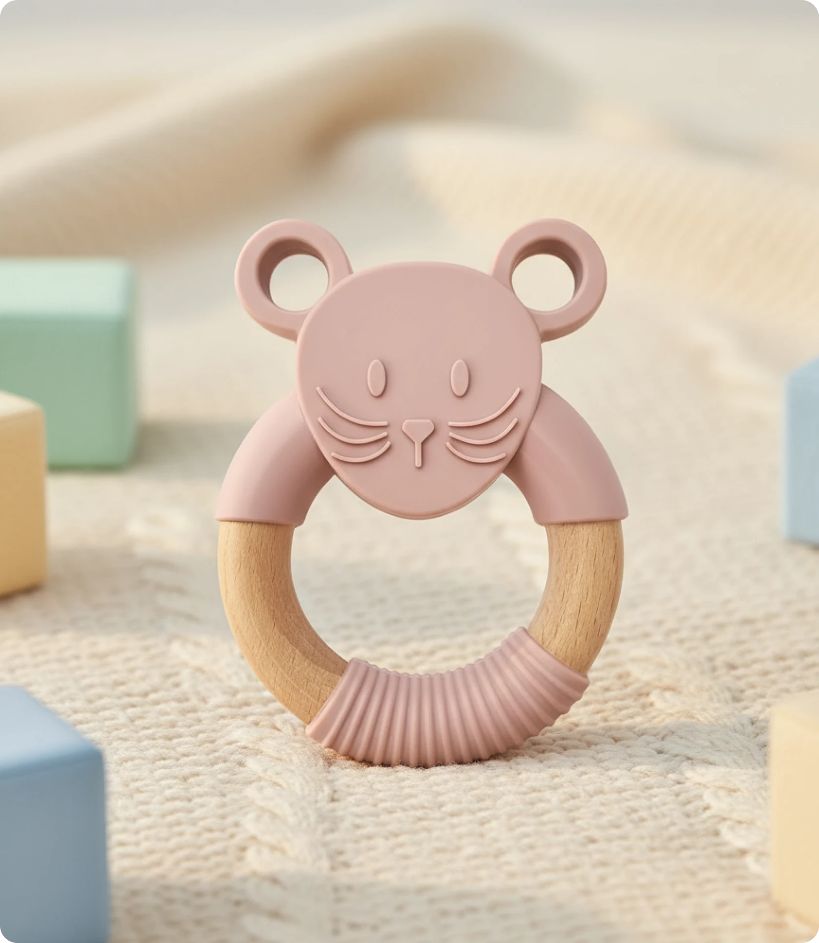 Mordedor de Silicone Rato – Rosa 👶✨
